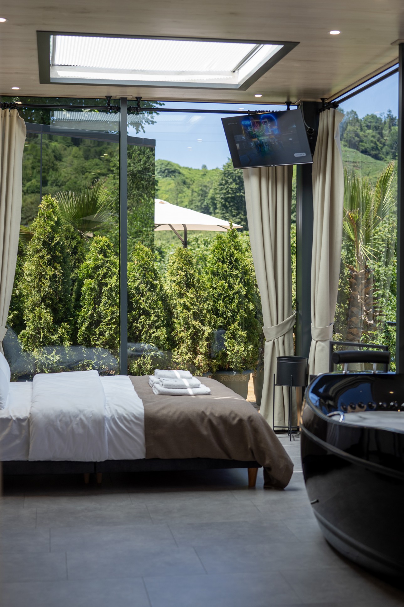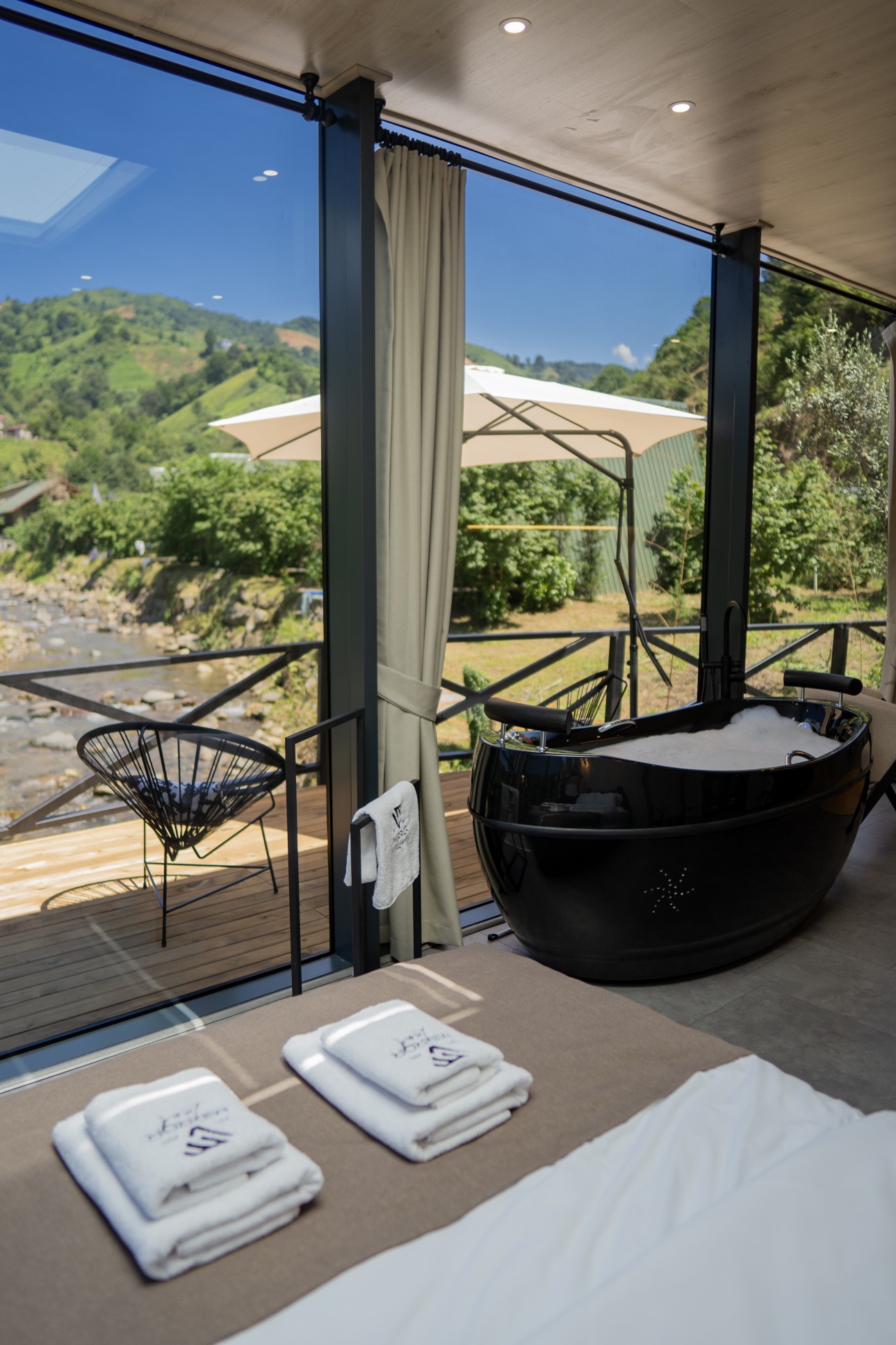 Mirorland Jakuzili orman ve dere manzaralı Oda, modern ve çağdaş bir iç mekan tasarımı stili olarak tanımlanabilir. Bu tarz, minimalizm, geometrik formlar, yansımalar ve aydınlatma unsurlarını kullanarak benzersiz bir atmosfer yaratır. Mirorland Oda, estetik ve işlevselliği bir araya getirerek mekanları daha ferah, aydınlık ve ilgi çekici hale getirir.