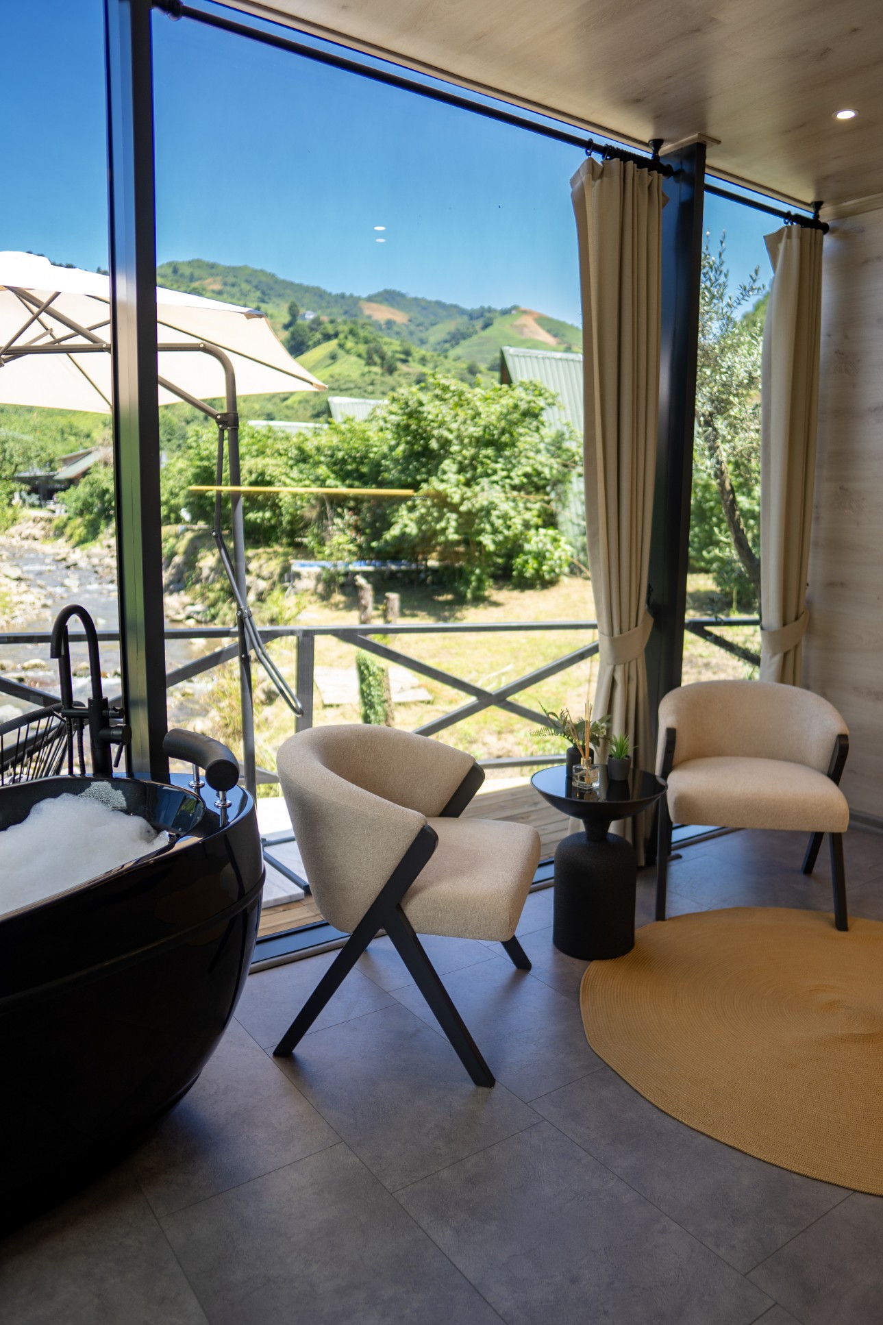 - Bungalov orman ve dere manzaralıdır.