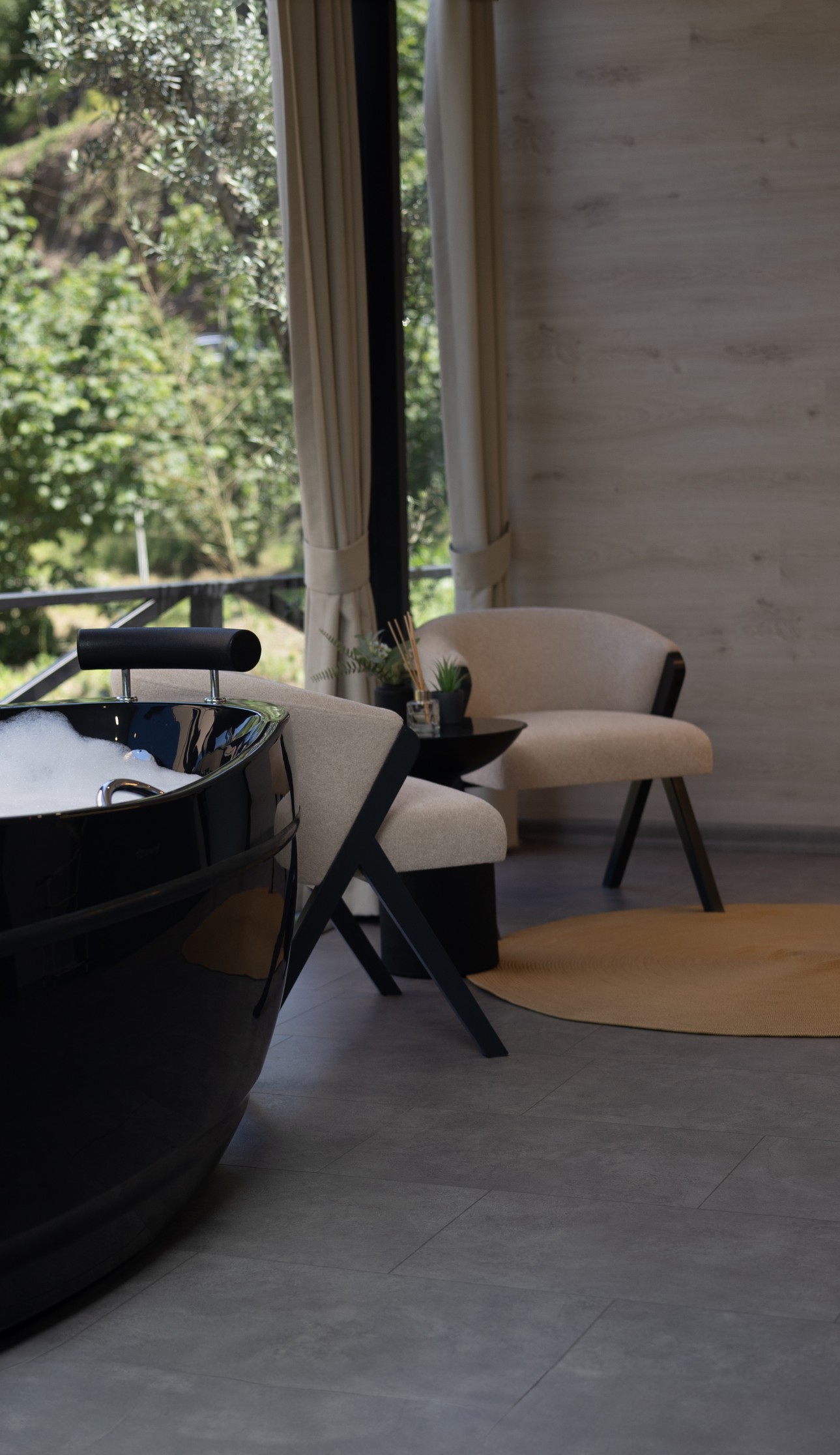 Mirorland Jakuzili orman ve dere manzaralı Oda, modern ve çağdaş bir iç mekan tasarımı stili olarak tanımlanabilir. Bu tarz, minimalizm, geometrik formlar, yansımalar ve aydınlatma unsurlarını kullanarak benzersiz bir atmosfer yaratır. Mirorland Oda, estetik ve işlevselliği bir araya getirerek mekanları daha ferah, aydınlık ve ilgi çekici hale getirir.
